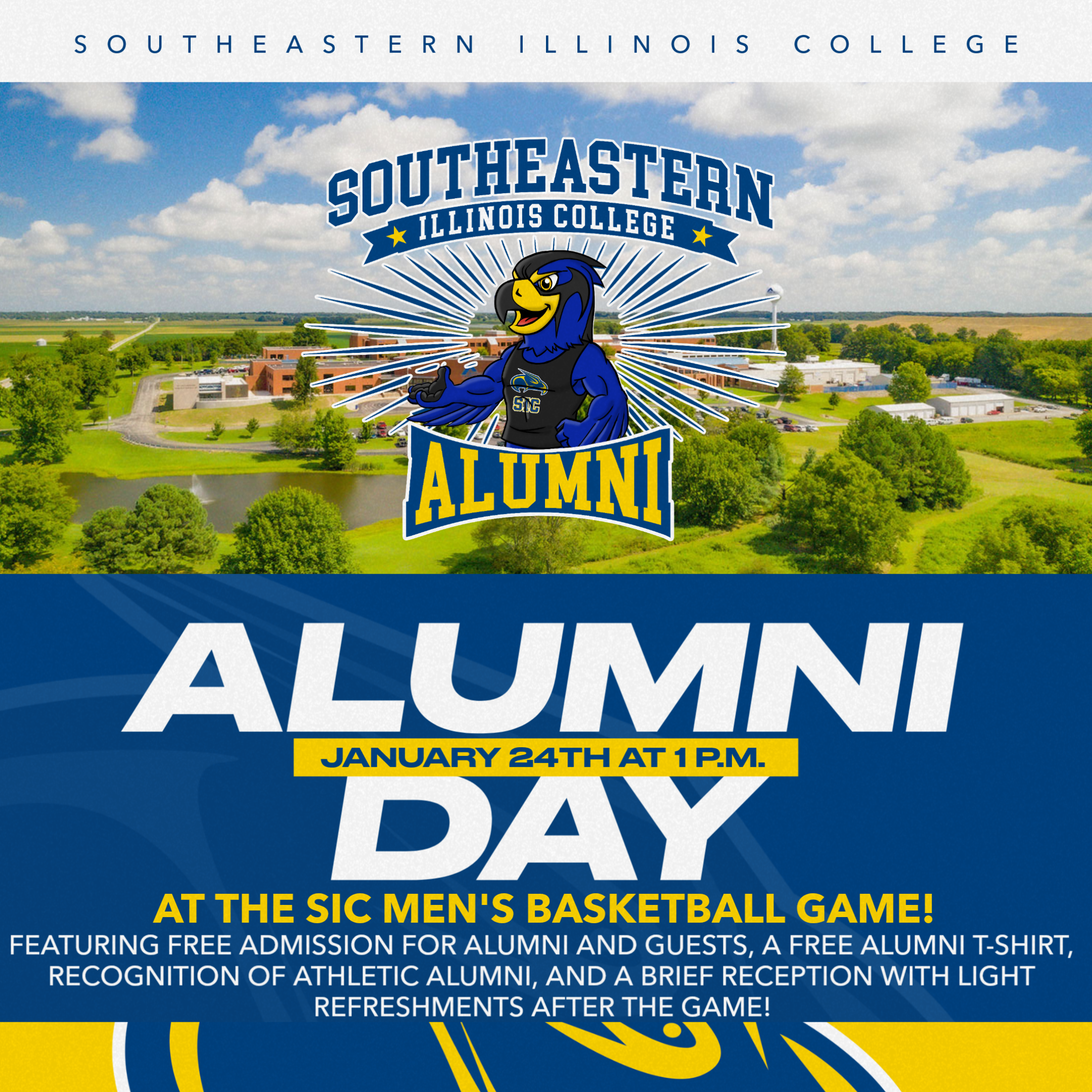 All alumni are invited to attend the game, with free admission for alumni beginning at 1 p.m. in Deaton Gym. Alumni will also receive a free SIC Alumni T-shirt while supplies last. During halftime, SIC will recognize alumni members of SIC athletics and competitive teams.